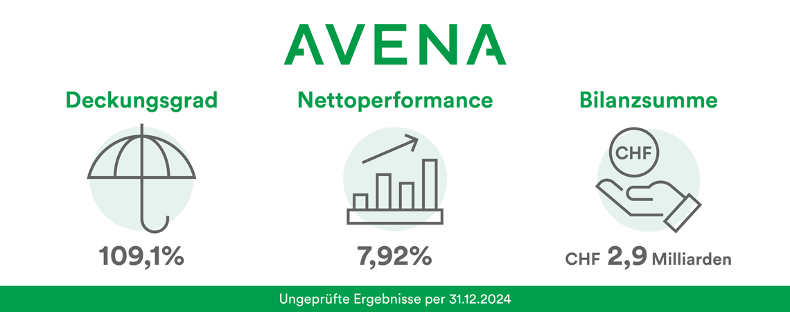 AVENA hat das Geschäftsjahr mit einem Deckungsgrad von 109.1% (ungeprüft) und einer Rendite von 7.92% abgeschlossen.