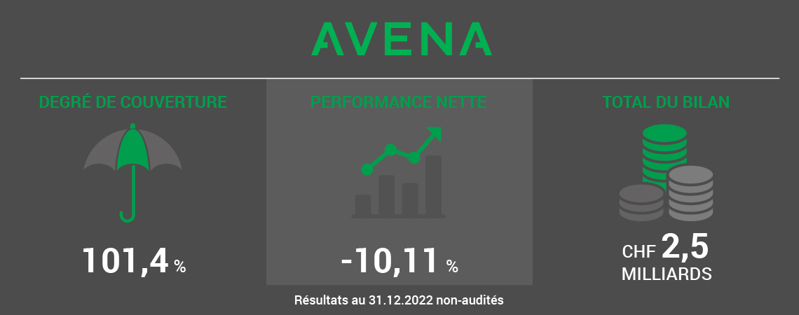 AVENA boucle l’exercice avec un degré de couverture de 101,4% (non-audité) et un rendement de -10,11%, supérieur aux indices de référence (LPP 25 -14,06% etLPP 40 -14,92%).