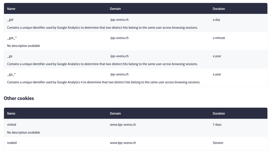 Les liens hypertextes relatifs aux services ou logiciels tiers ci-dessous sont fournis à titre indicatif. AVENA ne peut en aucun cas être tenue pour responsable de leur contenu ou de la politique de confidentialité des tiers concernés.AVENA peut utiliser les cookies, respectivement les technologies de traçage du tiers suivant : Google Analytics.