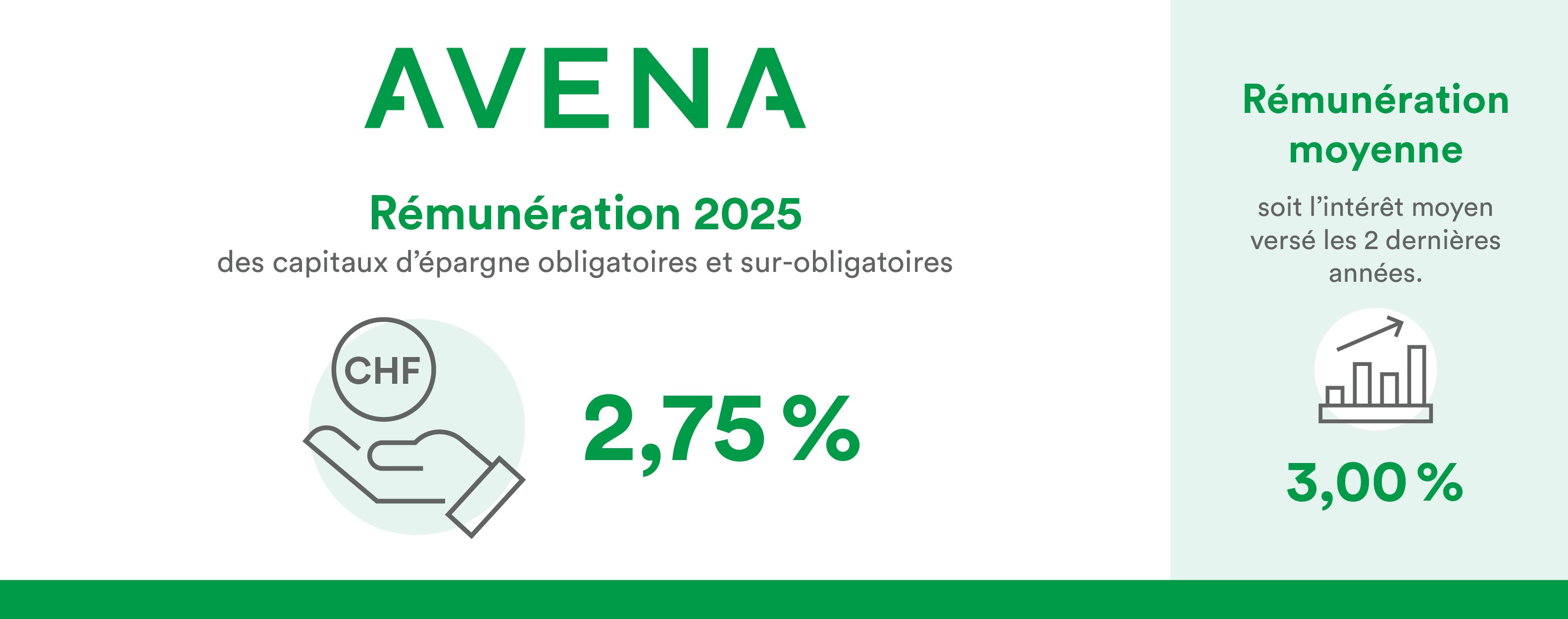 Les assurées et assurés d’AVENA bénéficient d’une rémunération nettement supérieure au taux minimal légal (1,25%), permettant ainsi d’améliorer leurs avoirs de prévoyance.